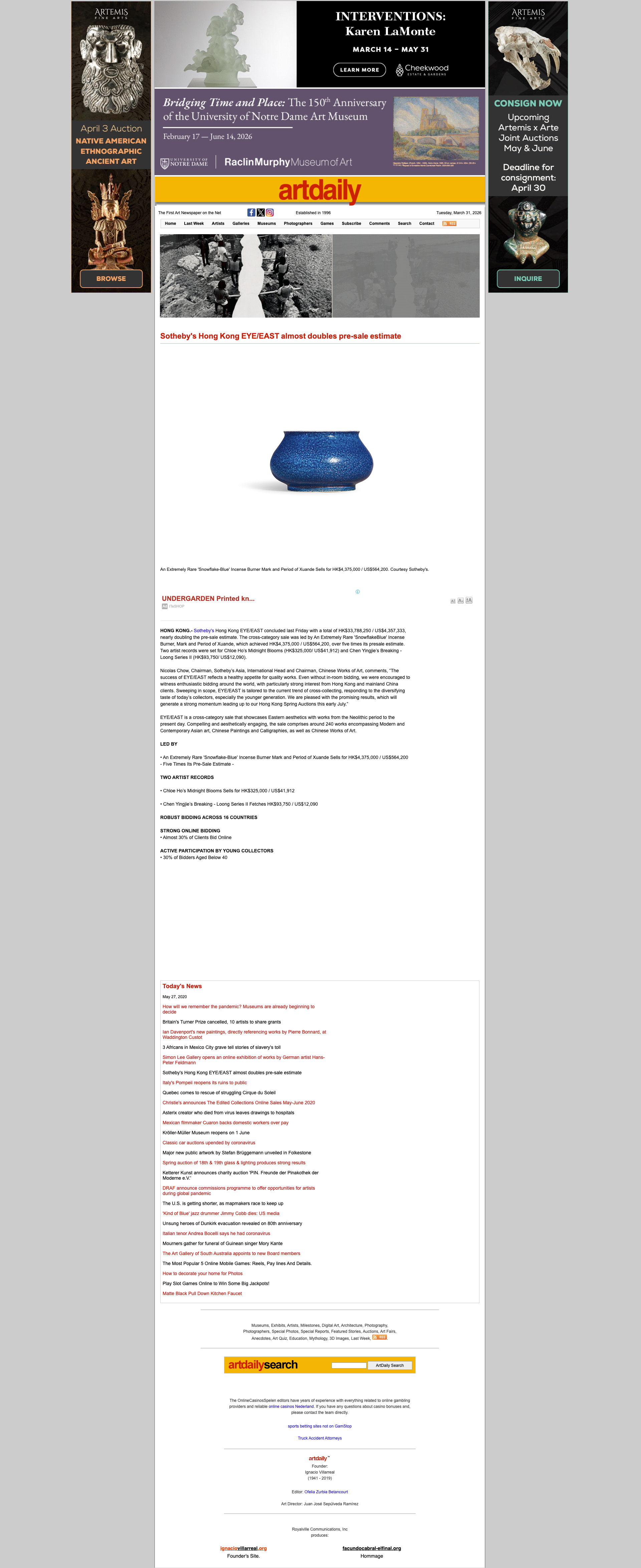 artdaily news Sotheby's Hong Kong EYE EAST almost doubles pre sale estimate